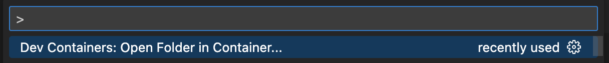 Once the container is up and running, open the VSC command palette (SHIFT + CMD + P