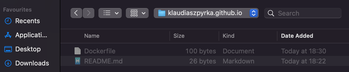 We’ll create a Docker image with Ruby and Jekyll using Dockerfile. Find the folder with the GitHub repository you cloned and create a file named Dockerfile