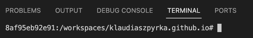 A new terminal tab should pop up at the bottom, and you will see that you are inside the newly created container. Any commands that we issue from now on are going to be executed inside this container.