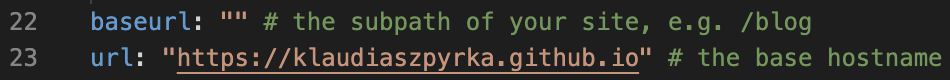 Note that my website doesn’t have a subpath, but if yours does, you will also have to provide this information (paste everything that comes after the slash, including the slash itself) in the baseurl