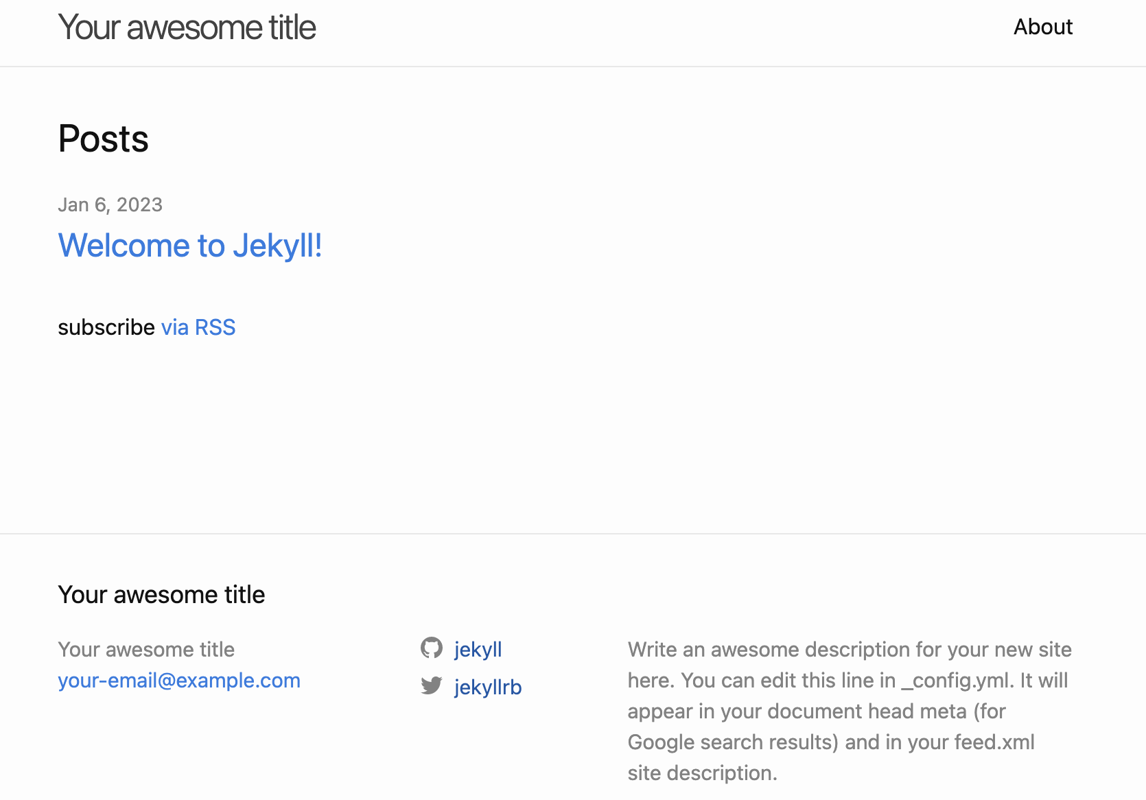 – set up a minimal Jekyll site. You will see a bunch of files appear in your working directory.