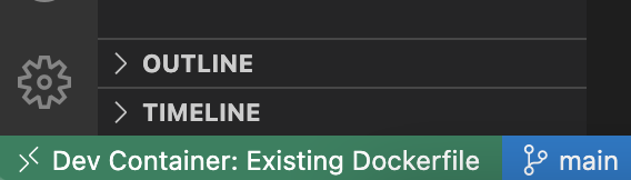 The green box at the bottom left corner of VSC indicates that you are connected to a Docker container.